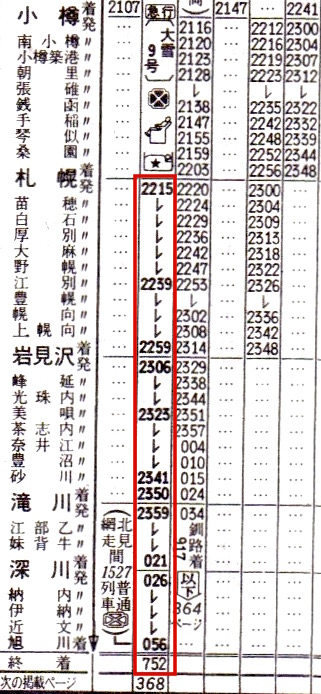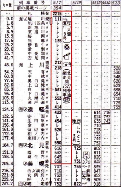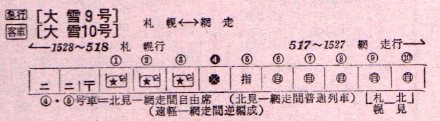 札幌2215-0550北見 急行大雪9 函館本線 517