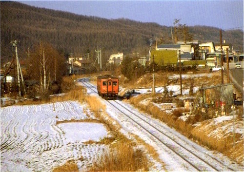 美幌7時25分発の列車に乗り込む。美幌を出ると石北本線から分かれて右へ大きくカーブし、すぐ旭通仮乗降場に着く。美幌の中心街で町役場や官公庁にかようサラリーマンや学生は、美幌駅で乗り降りするよりむしろ近い。住宅がまばらになりしだいに山へ近づくと美幌峠に通じる国道243号線と立体交差して上美幌。周囲ではてんさいやジャガイモ畑が目立つ。