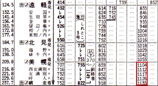網走1203-1517釧路 急行大雪1 釧網本線 368