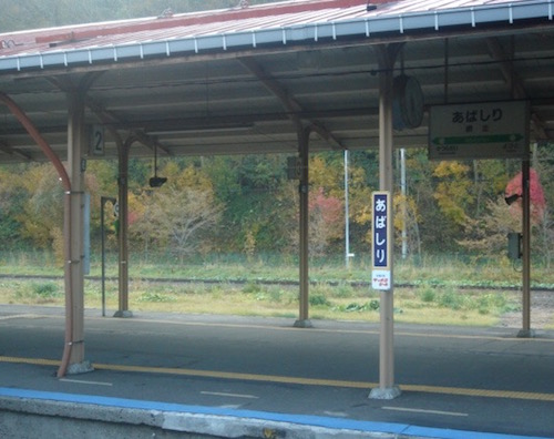駅名看板が縦書きなのは、網走刑務所から出所してくる受刑者が、もう二度と「横道に反れないように」という願いが込められているそうだ。