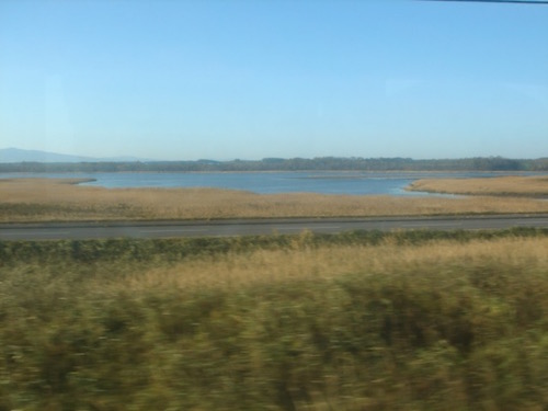 もう夕暮れが近い。厚岸を出ると線路は左にカーブし、厚岸湖沿いに北上する。清々しい風が窓から入ってくる。そして別寒辺牛(べかんべうし)川の河口右岸に沿いながら進む。列車の音に驚いて水鳥が羽ばたいている。