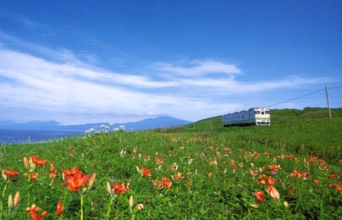 オホーツク海に沿って走るこの区間は風光明媚なことで知られている。