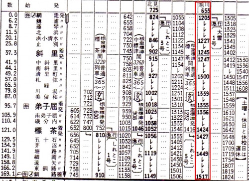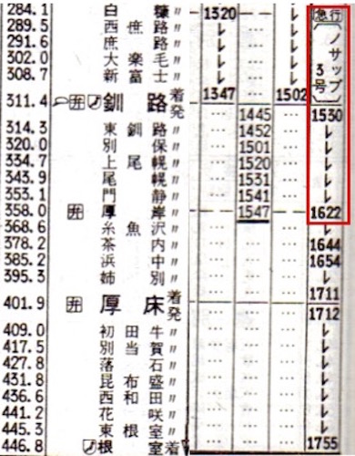 網走からは旭川始発の急行大雪1号に乗る。網走からは浜小清水、斜里、清里町、川湯、弟子屈、標茶、塘路に停車し釧路が終点である。