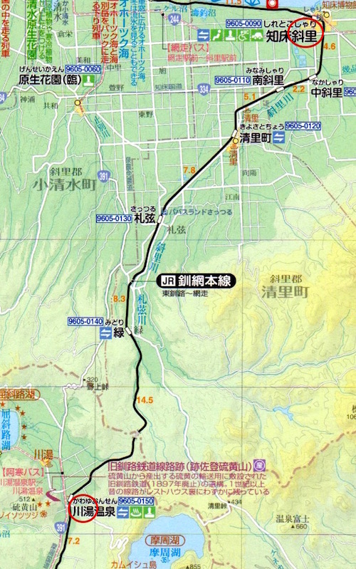 なお、8年前までは斜里から越川まで、南東方向に根北(こんぽく)線があった。最終的には標津線の根室標津まで延伸する予定だったが、廃止された。