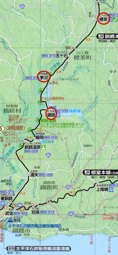 標茶を出ると線路は徐々に釧路川に近づき、かつて五十石船が遡ったことに由来する五十石駅を過ぎる。右手に釧路川の旧流路を見ながらまもなく茅沼。