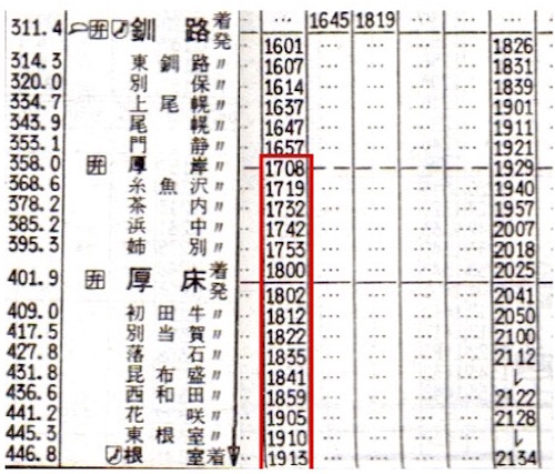 厚岸1708-1800厚床1802-1913根室 根室本線 239D