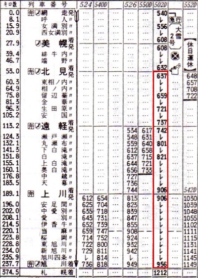昨夜はぐっすりと眠ることができ、疲れがとれた。今朝は北見駅を6時37分の急行大雪2号で出発する。