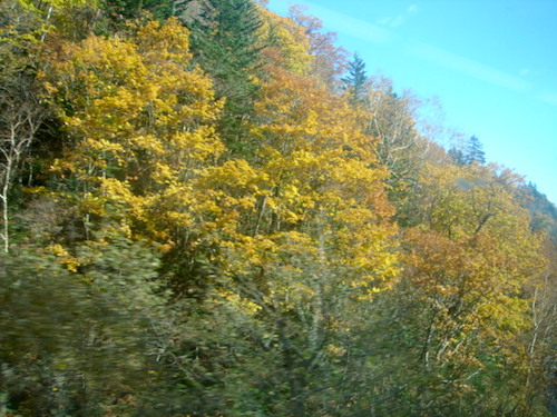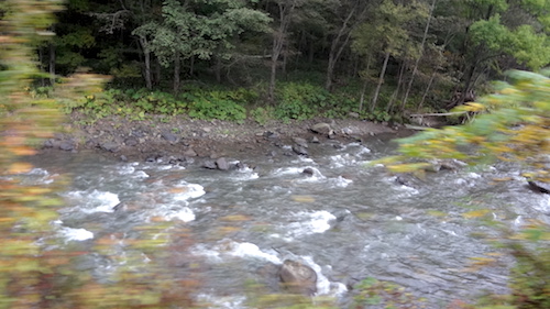 周囲は原生林ばかりで民家もない。少しずつ紅葉しはじめている。奥白滝から次の中越(なかごし)までは16.7kmもあり急勾配のため普通列車では30分ほどかかる。