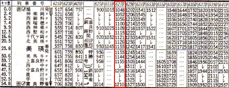 旭川1048-1210富良野 富良野線 627D 【富良野線完乗】