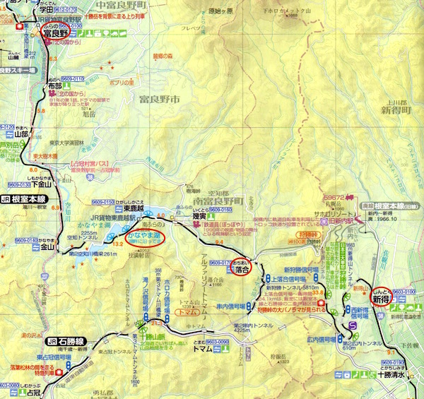 右に回りながら第一広内トンネルをくぐり、西新得信号場を過ぎ、右に回って新得山トンネル(1,683m)をくぐる。さらに右に大きく回って旧線と合流してゆっくりと新得に入る。落合〜新得間は四つの信号場があるが駅間距離28.1kmは12年前から日本最長をなっている。