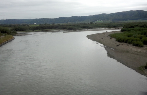 札内川を渡ってしばらくすると札内。札内から少し進んで築堤の上に出ると右側は山地である。途別川を渡り、さらに築堤を進む。十勝川の氾濫原をさけるために築堤を通っているのだろう。