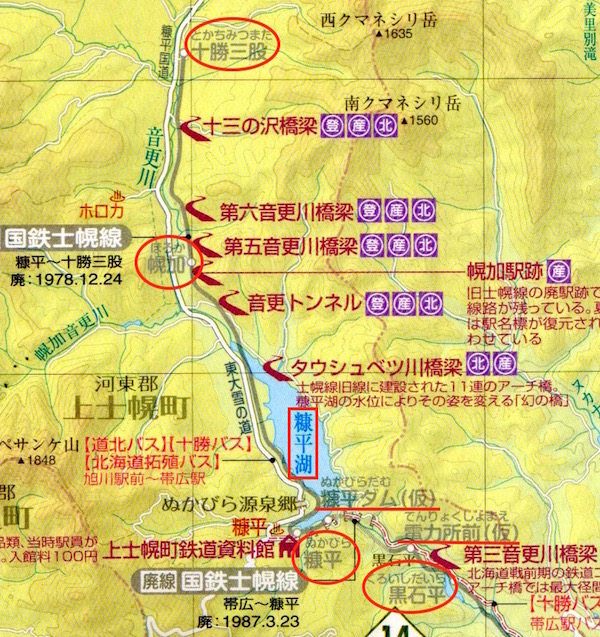 昭和31年(1956年)に糠平(ぬかびら)ダムが完成したため旧線は湖底に沈み、ダム西岸に新たに路線が変更された。
