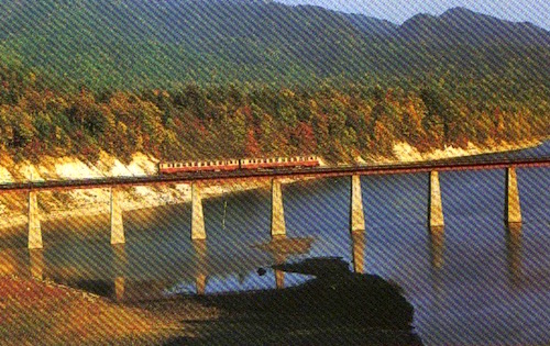 糠平湖を右手に見ながらさらに勾配を登っていくと、音更トンネルを通って幌加(ほろか)駅。そして音更川を二度渡り、十三の沢橋梁を越えると終点の十勝三股が近づいてくる。