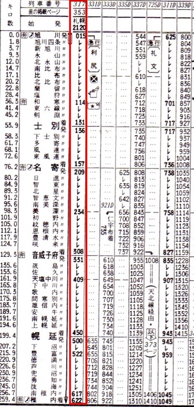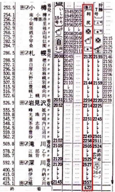 札幌2120-0622稚内 急行利尻 函館本線/宗谷本線 317