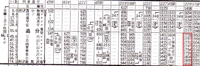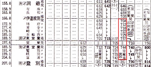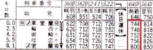 伊達紋別0704-0737東室蘭0744-0800室蘭 室蘭本線 4541D