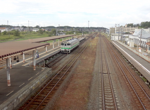 苫小牧を出てしばらくすると日高本線が右に分かれていく。そして沼ノ端で直線区間は終わる。この先、千歳線の上下線が室蘭本線を挟む形で進んでいき、千歳線の上りが室蘭本線をオーバークロスしてしばらくすると遠浅(とあさ)。安平川を渡って早来へ。このあたりでは酪農が盛んだ。早来を出て左へ曲がると安平。石勝線の工事を横目に見ながら追分へ。石勝線が完成すると札幌や新千歳空港から道東へのアクセスが格段によくなることは間違いないだろう。