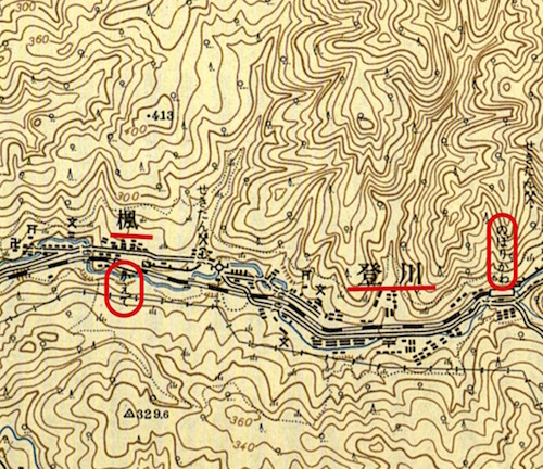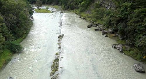 滝ノ下信号場を過ぎ、川を渡って左に折れ、もう一度川を渡ると、川幅は狭まり、竜仙峡、千鳥ヶ滝と渓谷が続く。