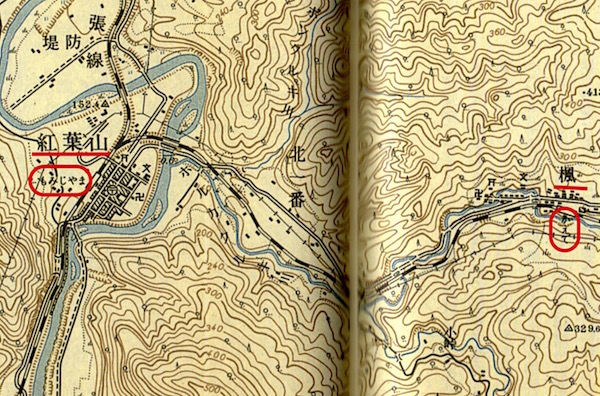 紅葉山を出ると夕張への線路と別れて右にカーブして夕張川を渡る。ホルカクルキ川に沿って谷を登っていき、その支流を渡って楓に着く。周辺には北炭真谷地炭鉱楓鉱があり、炭鉱住宅が広がっている。