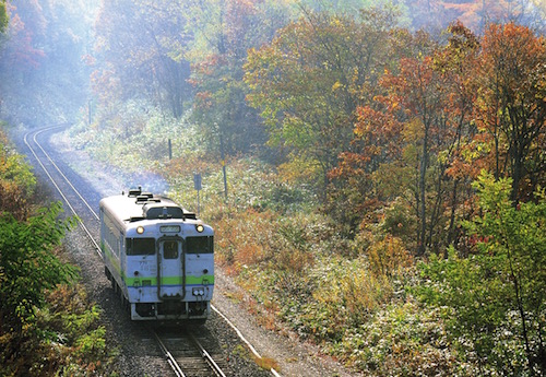 追分からは室蘭本線に乗り換えて岩見沢を目指す。夕張線を右へわけて線路はまた直線区間だ。三川、古山(ふるさん)、由仁(ゆに)と続き、夕張川を渡って栗山へ。ここから左に夕張川を眺め、トンネルをくぐって栗丘へ、そして北へ向かって栗沢となる。”栗”がつく駅が三つ並んでいる。そして万字線が右から合流して志文。函館本線に突き当たりそうになり右に急カーブして函館本線に合流して岩見沢に着く。