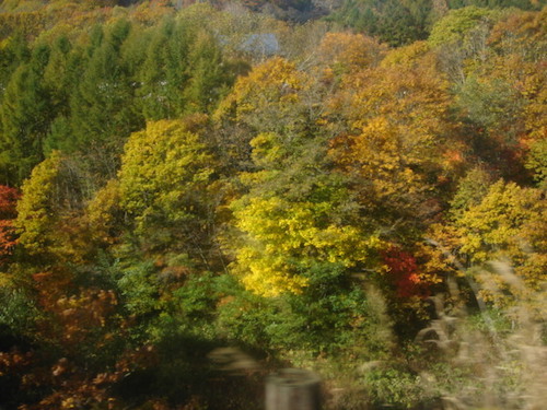追分を出ると左側の車窓はながらかな丘陵地帯であるが、これの頂上線は日本海と太平洋の大分水界となっている。