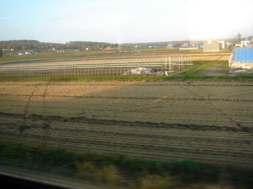 苫前、興津仮乗降場を出ると海岸線は遠ざかり、天売島、焼尻島へのフェリーが出ている羽幌に着く。