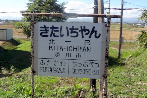 深川を出た列車は、函館本線から右手に分岐し、水田地帯を走り北一已(きたいちやん)に着く。「イチヤン」とはアイヌ語で鮭の産卵場のことだが変わった駅名だ。