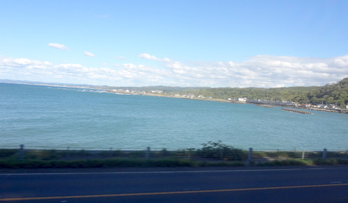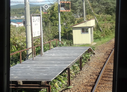 小平蘂川を渡り、小平蘂トンネルを抜けて花岡仮乗降場を過ぎて、急な上り坂になり大椴子トンネルをくぐって大椴(おおとど)に入ると、再び左手に海が見える。