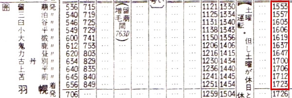 なお羽幌から深名線の朱鞠内までの計画路線(名羽線)があったが周辺の炭鉱の閉山が相次ぎ、開通できるのかさえ危うい状況である。