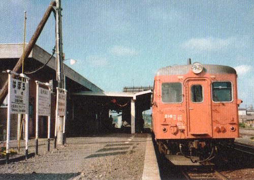 広い区画の水田が延々と続いている。幌新太刀別(ほろにたちべつ)川の谷へ入っていき、真布(まっぷ)仮乗降場を過ぎると恵比島。9年前に廃止された留萌鉄道の起点で、昭和、浅野の炭鉱があり石炭輸送で大いに賑わっていた。ここで旭川行きの急行るもい2号と待ち合わせのため5分間停車する。