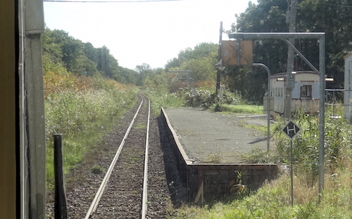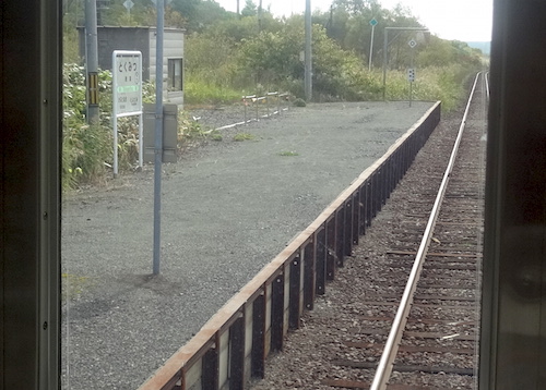 天塩有明、天塩栄、初山別(しょさんべつ)と山の中を走り、時々しか海は見えない。