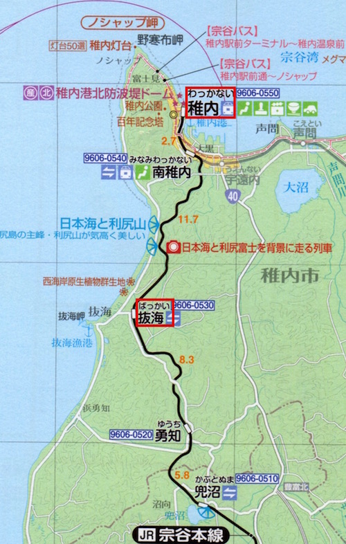 途中で左側の車窓に日本海越しの利尻富士の絶景を眺めることができる。ここも私の好きな車窓の一つだ。やがて市街地が見えてきて、右側から天北線が近づいてくると南稚内である。ここで普通列車の名寄行きと列車交換。
