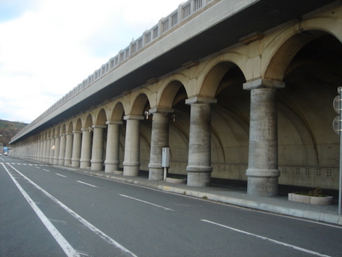 西の山には稚内公園がある。列車は稚内が終点だが、線路はまだ続いている。北に進んで右に折れる。その線路の北側には北からの風を防ぐドームが長く続いている。線路の終点は元稚内桟橋のあった場所である。