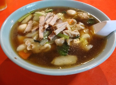 でてきた弁麺は、麺の上にトロミのある餡がかかっている。麺は細く、スープにはしょうがが効いている。広東麺に似ているが違うらしい。広東麺も食べた事ないから比較はできないが。具は豚肉、小海老、イカ、野菜、うずらの卵(2個)などであり、さらにチャーシューの細切りがのっている。トロミのついた五目そばといった感じである。美味しくいただき小田原駅に戻る。