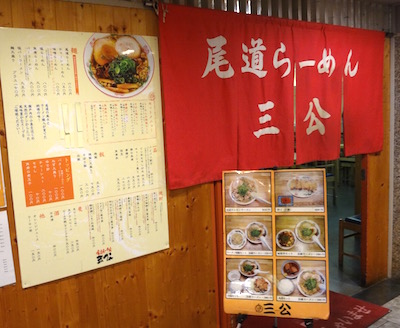 広島駅ビルのアッセの2階にある尾道ラーメン三公(さんこう)に入る。今回の旅の目的の三江線(さんこうせん)に敬意を表してラーメン屋さんも「さんこう」である(笑)。このレストランフロアでは、数軒あるお好み焼き屋は満員で待ち客もできていたが、ここはラッキーにも空いていた。
