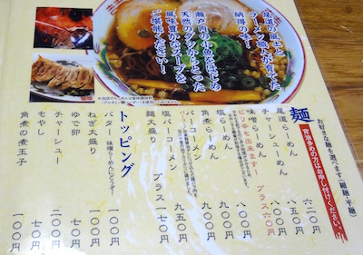 一番シンプルな尾道ラーメンを注文する。バイトのかわいくて若い女の子から、細麺か平麺か聞かれたので平麺を選択。
