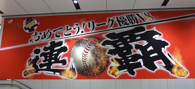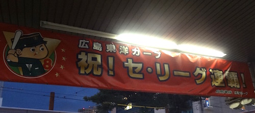 広島駅では「広島カープ おめでとう! リーグ優勝 V8 連覇」の文字が躍っていた。