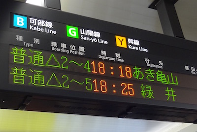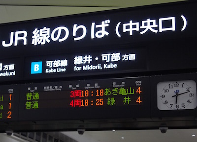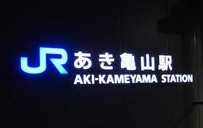 陰陽連絡路線の一つとして計画された可部線は、広島から可部・加計を経て島根県浜田市まで結ぶ予定だったが、三段峡までしか線路はつながらず、しかも可部以遠が2003年(平成15年)に廃止になってしまった。しかし、可部から河戸帆待川(こうどほまちがわ)駅とあき亀山駅の二駅が2017年(平成29年)3月に電化の上で延伸となった。一度廃止になった区間が、部分的にでも復活するのは珍しいことである。未乗だった可部からあき亀山まで乗車したことで可部線再完乗となった。