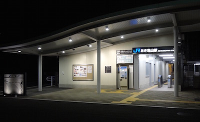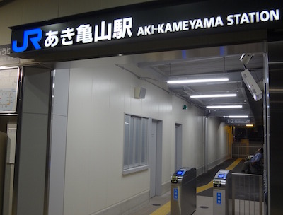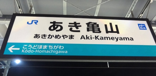 あき亀山駅に到着した。昔の可部線には「安芸亀山」駅があったが、場所が異なるために新しい駅は「あき亀山」と旧国名をひらがなで名乗っている。なお、かめかめステーションも、これで再制覇したことになる。