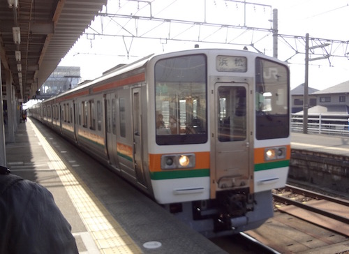 島田をでるとすぐに大井川橋梁を渡る。「箱根八里は 馬でも越すが 越すに越せない 大井川」と唄われていたように、昔は水量豊富で暴れ川だったようだ。鉄道でならあっという間に通過できる。