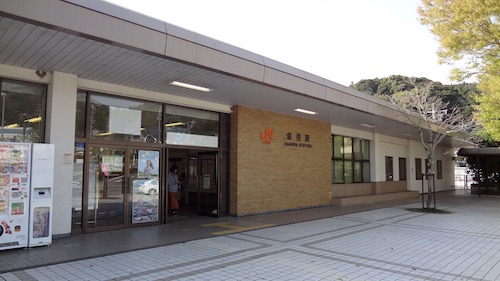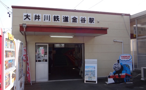 JR金谷駅の駅舎をバックにパチリと記念撮影。