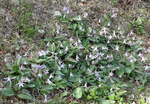 カタクリは、紅紫色の可憐な花が下向きに咲くのが特徴だ。ここは自生するカタクリの南限らしい。
