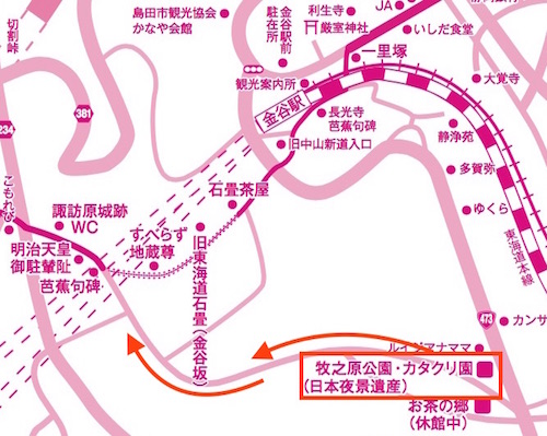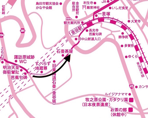 道路を渡り金谷駅を俯瞰する場所を通ってさらに下る。
