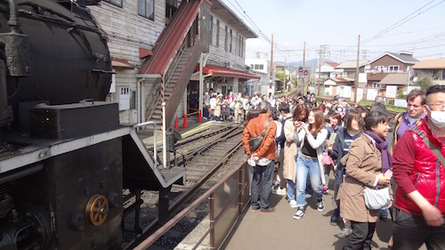 プラザロコを出ると、ひっきりなしに大型観光バスが駅前駐車場に到着している。中国人の観光客も多い。おそらく同じSL急行に乗るのであろう。