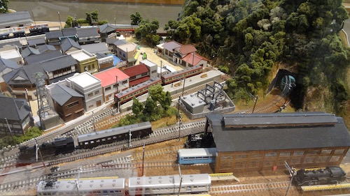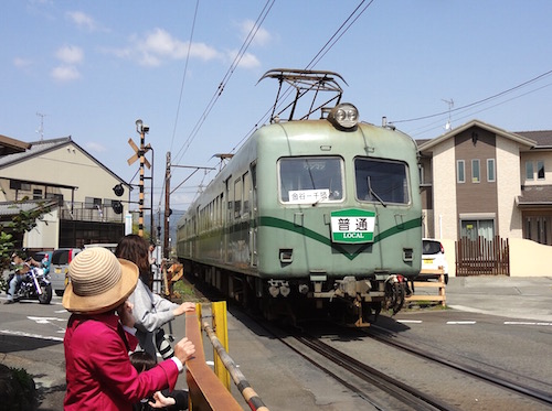 そして場所を路地裏に移してさくら13号の出発を待った。この場所もH氏の案内である。近くの踏切が鳴ったので、SLが出発かと思ったら逆方向からの南海電車だった。