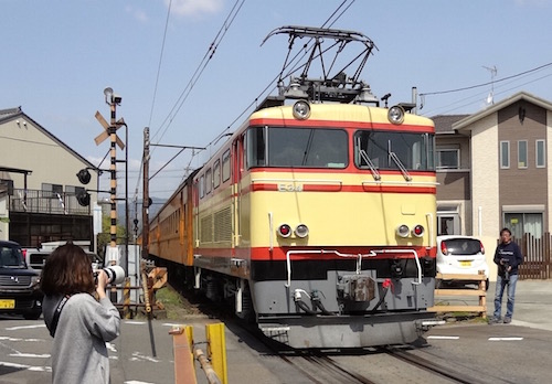 新金谷で下車すると臨時SL列車「さくら13号」の蒸気機関車の周りには黒山の人だかり。