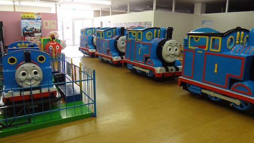 プラザロコの一番奥には、子どもたちでも楽しめるように機関車トーマスの遊具がたくさんあった。