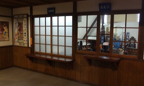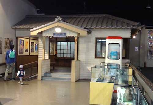 昭和30年代から40年代の駅舎を再現したノスタルジックなミュージアムは昔のポスターやレトロな電話ボックスなどが見られる。