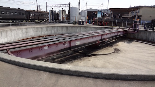 その後、転車台(ターンテーブル)などを見学して時間を待つ。過去に存在した転車台は1970年(昭和45年)に撤去されたため、SLの方向転換ができない状態となり、長い間上り千頭発金谷行き列車のSLが逆機となっていた。1970年代から21世紀初頭までの長い間、乗務員・利用客から不満の声があったが、転車台を再度設置することが決定され、2011年(平成23年)6月ごろより工事を開始、同年10月7日から使用を開始した。