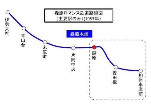 車両が増え、森原駅に併設してありました車両基地では狭くなったため新たに相州車庫を作り、昭和28年(1953年)に相州車庫まで森原本線を延伸しました。(森原〜相州車庫前はその後、曽田根線となります)
