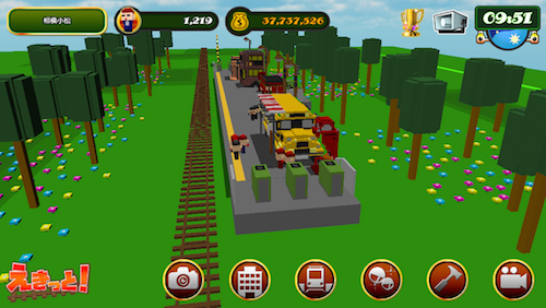中くらいの駅で、周囲をカラフルな公園で囲まれています。